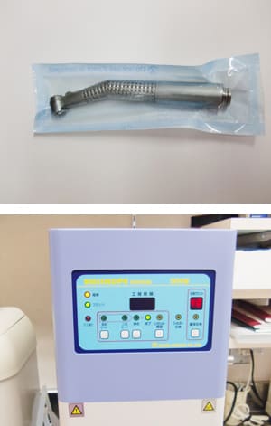 当院では治療に使用するすべてのハンドピース類(歯を削るための機械)は、全ての患者様ごとに交換しガス殺菌器で殺菌処理をかけております。
